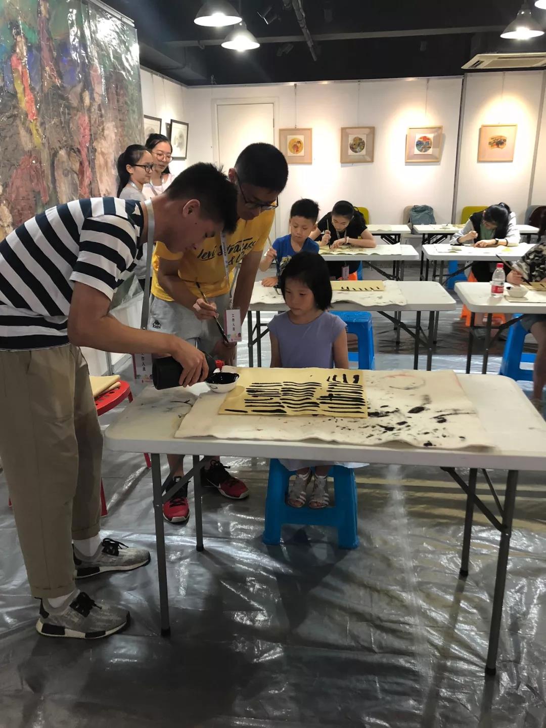 “普及傳統(tǒng)文化,弘揚海派藝術(shù)”暑期公益書畫課開展至今已經(jīng)是第四年了,課程面向本市全體中小學(xué)生,在“博雅網(wǎng)”報名,同時針對美術(shù)館所在地的社區(qū)特殊兒童進(jìn)行教學(xué)。教學(xué)過程中由向明中學(xué)高中生擔(dān)任志愿者服務(wù),今年的公益課邀請了上海書法家協(xié)會會員劉老師進(jìn)行現(xiàn)場教學(xué)。我們的公益課也得到了家長的一致好評。